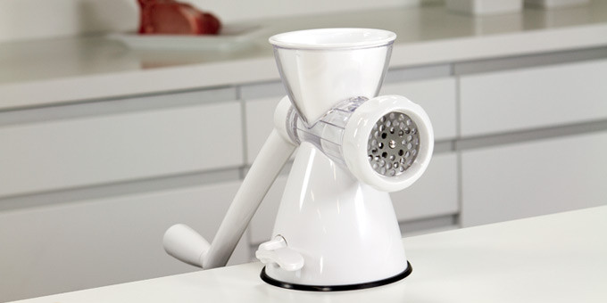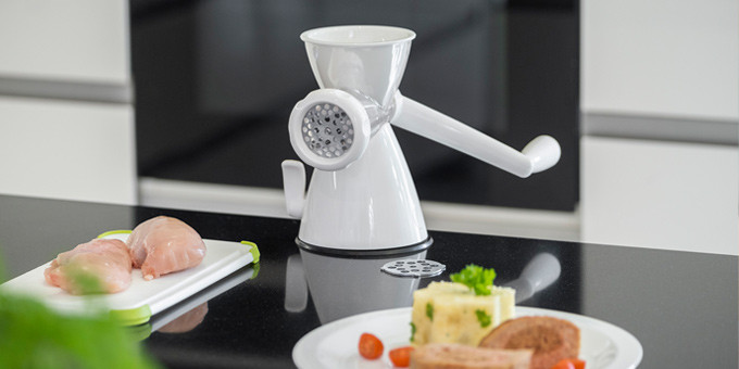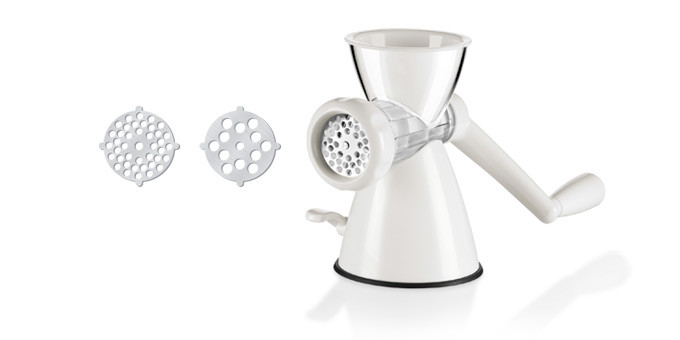 Kiválóan alkalmas minden általános típusú hús könnyű és gyors finomra/durvára darálására. Univerzális, kiváló zsemlemorzsa készítésére is, a megtisztított fokhagyma, vöröshagyma, pucolt dió, parmezán típusú kemény sajtok, passzírozott paradicsom, előfőzött zöldségek reszelésére, darálására. Speciálisan kemény, erősen ellenálló műanyagból készült, a vágókés és a lemezek első osztályú rozsdamentes acélból. Masszív nyomócsővel ellátott, a biztonságos használat érdekében, valamint kiemelkedően hatékony vákuumos tapadókorongokkal, a gyors és stabil munkalapra rögzítés érdekében. 3 éves garancia.