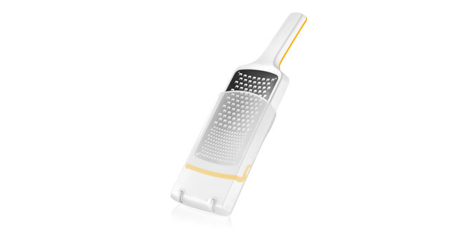 Első osztályú, rozsdamentes acélból készült, rendkívül éles és ellenálló pengéi alkalmasak parmezán, citromhéj, csokoládé, szerecsendió, gyömbér, fokhagyma, dió, friss torma stb. reszelésére. A védő borítás egyúttal a lereszelt élelmiszerek tartójaként is funkcionál. 3 év garancia. Vigyázat! A reszelő pengéi rendkívül élesek, mindig a védőborítójában tárolja.