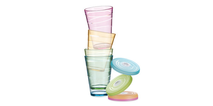 A szett része négy pohár fedelekkel, melyek megvédik az italt a rovaroktól.