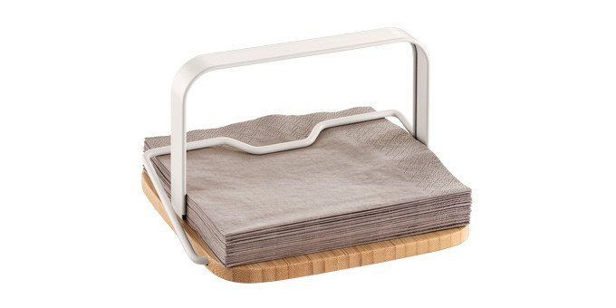 Kiválóan alkalmas az étkezési szalvéták tárolására, kényelmes szállítására és könnyű kivételére. Természetes bambuszból készült csúszásmentes kiegészítéssel, valamint minőségi fémből ellenálló felülettel. Tisztítsa nedves törlőruhával, ne mossa mosogatógépben.