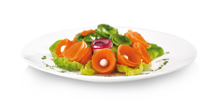 A szeletelő sárgarépa-, fehér retek-, uborka,- retek, stb.-ből való díszspirál szeletek készítésére szolgál. A termék első osztályú rozsdamentes acélból és ellenálló műanyagból készült, mosogatógépben való tisztításra alkalmas. 3 év garancia.