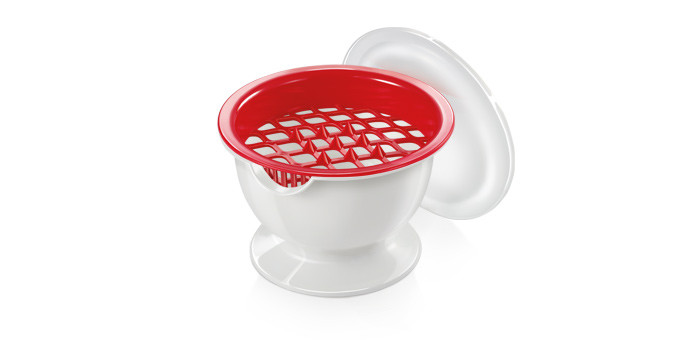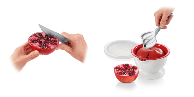Kiváló gránátalma magok héjtól való egyszerű elválasztásához, tetejjel a hűtőszekrényben való tároláshoz. Ellenálló műanyagból készült, mosogatógépben mosható. 3 év garancia.