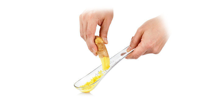 Kiválóan alkalmas gyömbér gyors és könnyű reszelésére, a gyömbér leve és húsa is kényelmesen áthelyezhető az ételekbe vagy italokba. Elsőosztályú műanyagból készült, csúszásmentes bevonattal. Mosogatógépbe alkalmas. 3 év garancia. Használat: A meghámozott gyömbért zúzza szét a reszelő fogain való dörzsöléssel (1) és a lereszelt húst és levet öntse át az ételbe vagy italba (2).