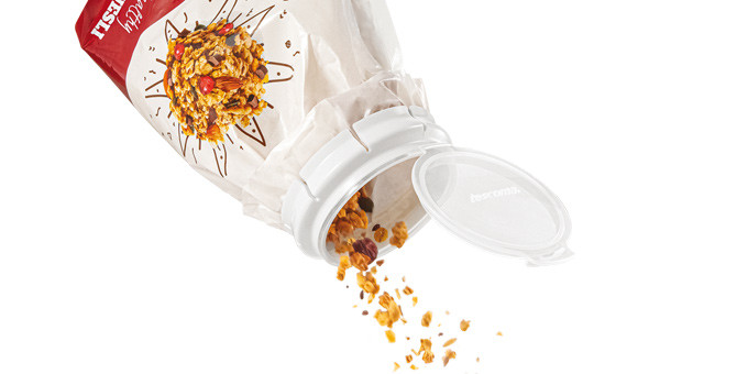 Kiválóan alkalmas ömlesztett élelmiszerekkel töltött pl. kukoricapehely, tészta, hüvelyesek, rizs, stb. műanyag vagy papírzacskók lezárására, és azoknak ételbe történő kényelmes adagolására közvetlenül a zacskóból. Ellenálló műanyagból készült, hosszútávú használatra tervezve. Szükség esetén szedje szét és mossa el, mosogatógépben mosható. 3 év garancia.
