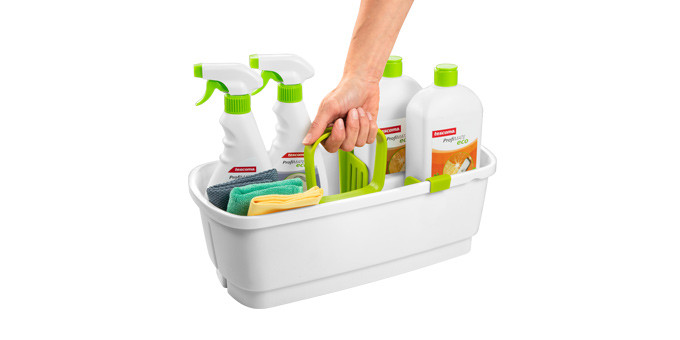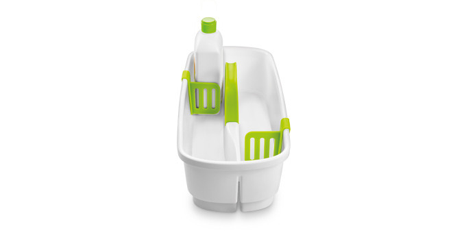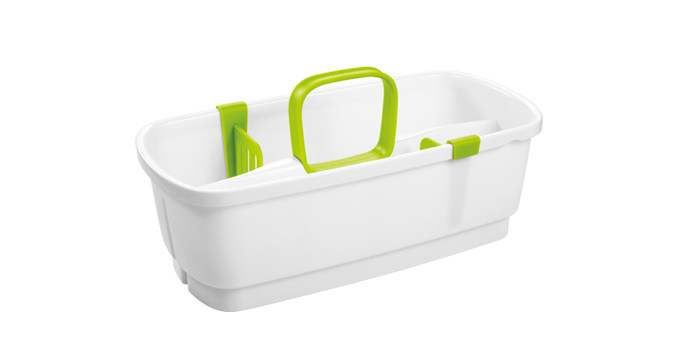 Kiválóan alkalmas a tisztító eszközök helytakarékos, átlátható tárolására a ProfiMATE Takarítóvödörben 12 l (kód 900946). Mozgatható elválasztók a tisztítószerek, huzatok, törlőrongyok, szivacsok és has. elválasztott tárolásához, tágas fogantyú a kényelmes hordozás érdekében. Ellenálló műanyagból készült.