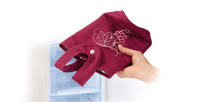 Gyorsan lehűti a boros- és pezsgősüveget, ásványvizes palackot stb. és az italokat hidegen tartja egészen a felszolgálásig. Fogantyúval ellátva az italok kényelmes töltésére. Ellenálló szintetikus textíliából készült, rendkívül hatékony zselés hűtő- és alumínium termoizolációs betéttel.