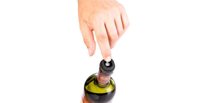 Kitűnő borok frissen tartásához. Az ital tovább megőrzi ízét a légmentesen lezárt palackban.  2 darab légmentesen záró dugóval hagyományos típusú borosüvegekhez.